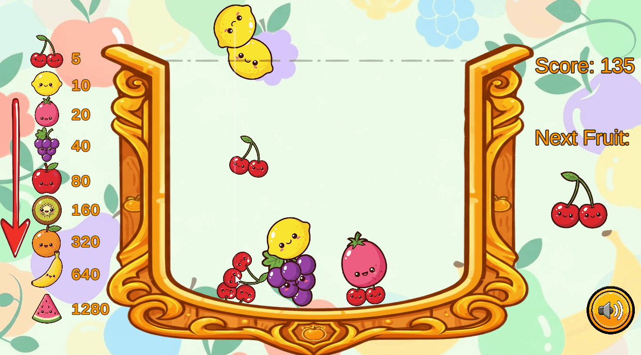 Drop fruit into the basket, combine matching fruit to create bigger ones, and plan ahead using the next fruit preview. As the pile grows higher, things get tense — one bad drop can end the run.
